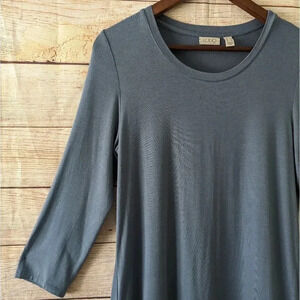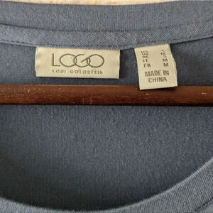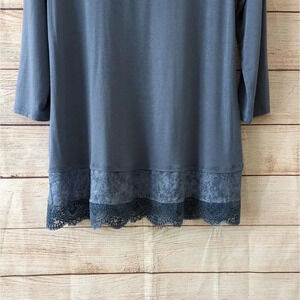 LOGO By Lori Goldstein Size Small Scoop Neck Lace Trim Hem Tunic Top Blouse Blue