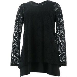 Top Features: V-neckline, stretch lace, long sleeves, straight bottom hemline
