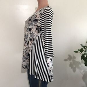 LOGO by Lori Goldstein Rayon 230 Top with Striped Sleeves