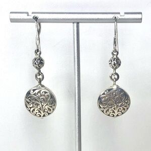 LOIS HILL Mother of Pearl Earrings Inlaid with Granulated Sterling Silver and Reverses To Cutout Scroll