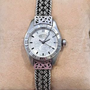 LOIS HILL White Round Face Watch Sterling Silver Bracelet & Roman Numeral Bezel