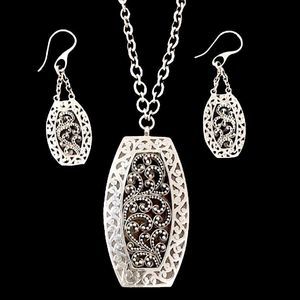 LOIS HILL Sterling Silver Granulated Scroll Oxidized Sterling Silver Tonneau Necklace and Earrings Set