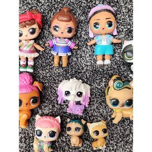 Pre-owned Lot of 12 LOL Dolls and pets. All In gently used condition. Shows typical signs of wear associated with use such as minor scuffs and scratches. They measure approximately 2- 3 inches tall. Colors still very vibrant.