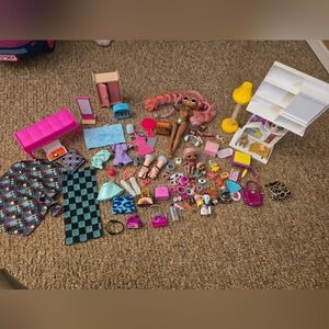 Vibrant doll with a variety of colorful accessories. Includes clothing, furniture, and toys.