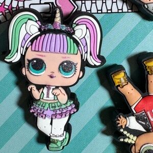 Add fun to your Crocs with this L.O.L. Surprise! Jibbitz Charms set. Featuring vibrant colors like green, purple, and red, these charms are perfect for kids who love to express their style. Official L.O.L. Surprise! and Crocs collaboration.
