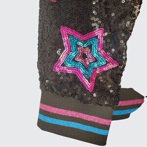 This stylish and vibrant silver bomber jacket from LOL Surprise "Shine like a diamond" is designed for young fashion enthusiasts. It features colorful star and doll sequin embellishments, adding a playful touch to any outfit. The jacket's durable design ensures comfort, while the eye-catching details make it a standout piece for a child's wardrobe.