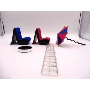 LOL Surprise OMG DOLL HOUSE Porch Patio Set Music Note Chairs and Umbrella with no stand one of the patio Railing