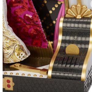 Includes exclusive fashion doll, showstopping fashions, dramatic cape, luxe, golden accessories, fierce shoes, a brush, light-up jukebox stage and doll stand that really plays music and token to play music.