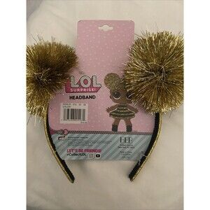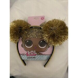 This is a LOL Surprise Queen Bee Gold Bow Headband Tiara from the L.O.L. Surprise! brand. The headband is designed for girls aged 3 and above, featuring a large gold bow with the character theme of LOL Surprise. It is a party headband perfect for surprise occasions and party favors, made of plastic in the United States. The product is fun and stylish for young fans of the LOL Surprise franchise.