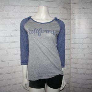 Excellent condition Gray base with blue ¾ sleeves Bold “CALIFORNIA” graphic across the chest Size Large · Soft material · Lightweight comfort
