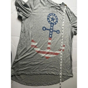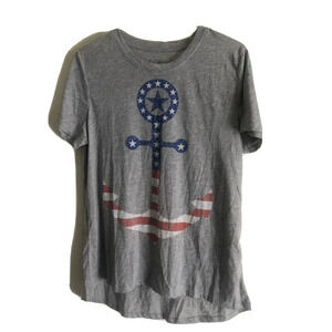LOL Vintage Womens Tee T-Shirt USA Anchor SZ XL Grey Hi Low Hem