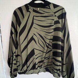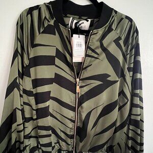 LOLA CASADEMUNT Bomber Jacket Zebra Striipe Khaki Black Size L New without Tags