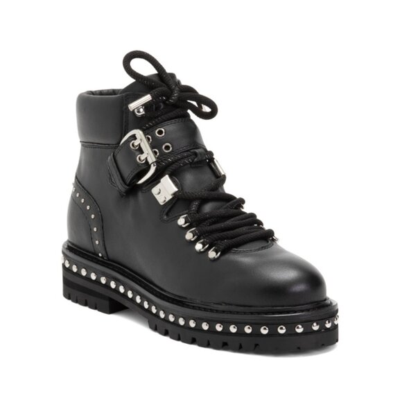 size chart conversion may vary slightly by country, padded collar and tongue, studded details, cushioned footbed, buckle detail, traction lug sole, leather lining