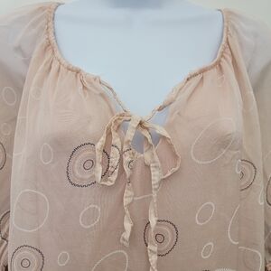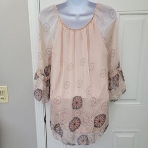 LOLA Made In Italy Silk Blend Sheer Blouse Blush Pink Medallion Print Small
