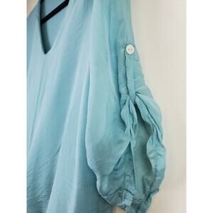 LOLA Made In Italy Womens Top Blue Round Neck Silk Layered Tie Front Flowey built in tank underneath Size Small