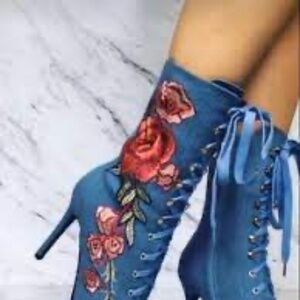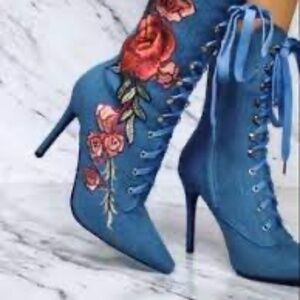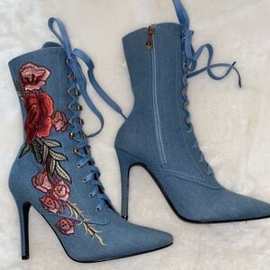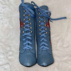 LOLA SHOETIQUE Cape Robbin Amara Denim Embroidered Boots
