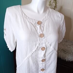 LOLA White Anthropologie LINEN Button Front Top Blouse Women's Made in Italy M/L
