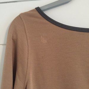 NWOT- LOLE ECO-FRIENDLY!! super soft long sleeve comfy outdoorsey fall top, two tone brown/tan colorblock