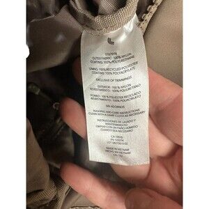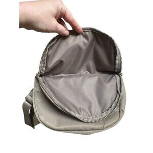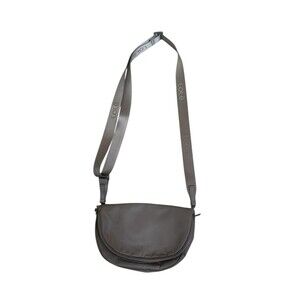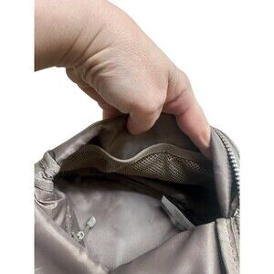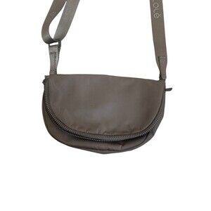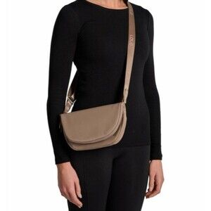 LOLE Crossbody Bag Womens Brown Beige Lightweight Nylon Everyday Flap Pocket. Outer is nylon with polyurethane coating, I believe for water repellency. The inside is polyester. Strap is adjustable, measures 10" wide by 7" tall. Zipper closure, outside has a zippered pocket on one side and an open pocket under the snap on the other side. inside has mesh pockets and another zippered pocket. Great for traveling. Used once but in perfect condition. Stored in a smoke-free environment.