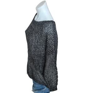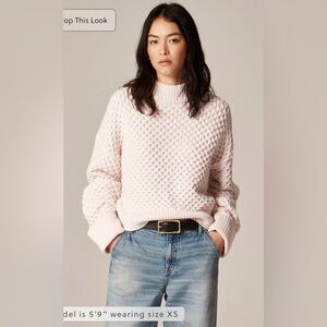 Dropped shoulder, Boat neckline, lightweight chunky cable knit pointelle detailing, oversized relaxed fit.