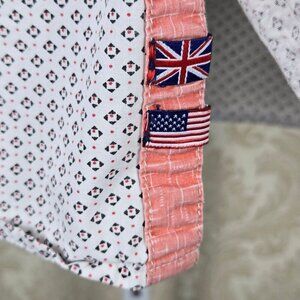 LON NYC Across The Pond Size L Diamond and Dot Pattern Short Sleeve Button Down