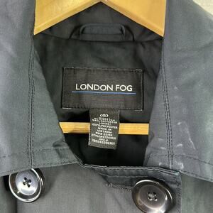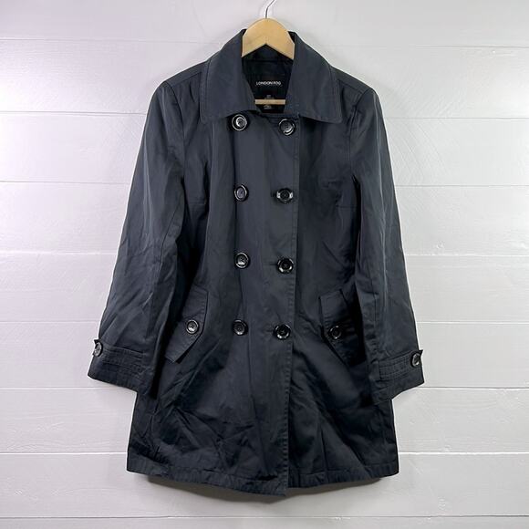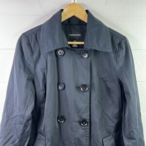 LONDON FOG Black Double Breasted Button Up Trench Coat Jacket Size Small