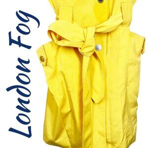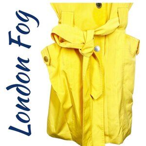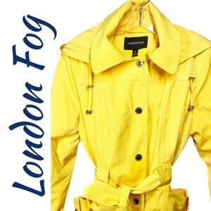 LONDON FOG Bright Yellow Classic Fisherman Short Trench Raincoat Hood Belted, Size Medium