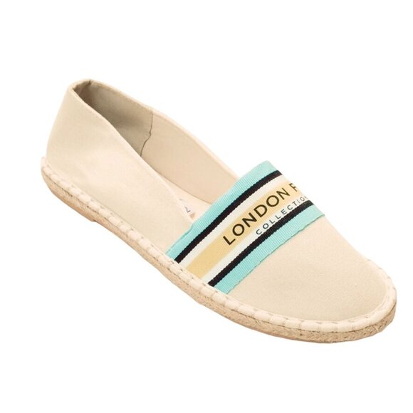 Chic and classic, the London Fog Collection Kariah Shoes are beige fabric slip-on espadrille flats in size 8.5. With a closed toe for a refined touch, these flats combine comfort and style.