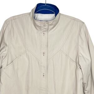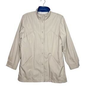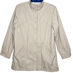 LONDON FOG Coat Button Front Relaxed Fit Twill Mock Neck Beige Size 12 Regular