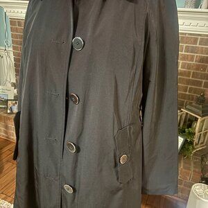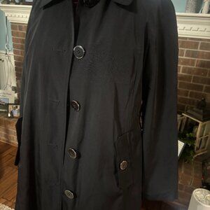 LONDON FOG LADIES SIZE M BLACK TRENCH COAT FULL BUTTON UP