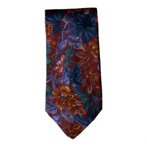 LONDON FOG Neck Tie Multicolor Flowers on Burgundy Background 56"