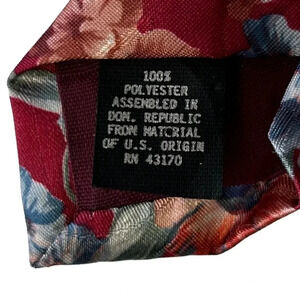 LONDON FOG Neck Tie Orange & Blue Flowers on Red Background 56"