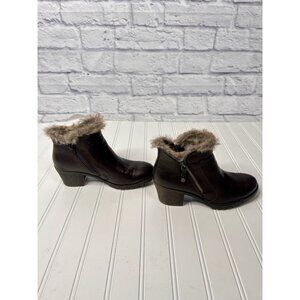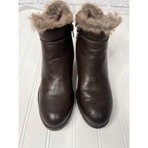 LONDON FOG Women's Dark Brown Fur Trim Side Zip Bootie 6M