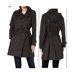 LONDON FOG Women's Double Breasted Trench Coat with Removable Hood