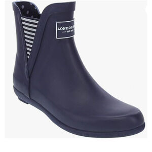 LONDON FOG Womens Piccadilly Rain Boot Navy 6 M US