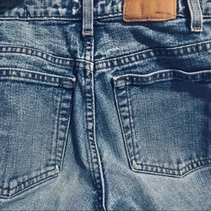 Perfectly broken-in 100% cotton straight-leg denim with authentic vintage whiskering and a subtle knee distressing. Rigid denim = that ’90s/indie sleaze feel buyers search for.