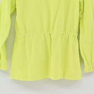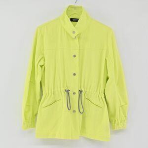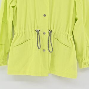 LONDON RAG Jacket Women's Size Medium Neon Chartreuse Yellow/Green 100% Cotton Twill Collection Snap Front Cinchable Drawcord Waist Welted Front Pockets Utility Retro Eclectic Sportswear