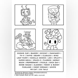 All characters in the listed coloring book were drawn and created by my daughter when she was 9yo. London Rock LLC, all rights reserved