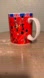 Is there anything more ‘London’ than the Royal Guards? This London souvenir mug features a wraparound design of delightful graphics of London Royal Guards marching in formation while other guards are having a wild time dancing, playing musical instruments, doing bell kicks, riding on each other's shoulders and raising havoc. Burnt red background with a border design of Union Jack flag circles below the rim. The word, London, and assorted Union Jacks are scattered throughout the design. Produced by SSL Destination Gifts; Sampson Souvenirs Ltd; Designed in Great Britain. Measures 4.25” tall with a 3.5” diameter; 5” across including handle. Holds 14 fluid oz.