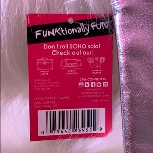Trendy! NWT! Flat shaped for packability or easy fit into your purse, Large, spacious interior & Top zip closure, Embossed text design for that added touch of sass, metallic finish for that extra glitz & glam! 6 available so bundle & save! TY! Coco