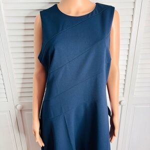 LONDON TIME Navy Blue Asymmetrical Detail Dress Size 16