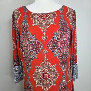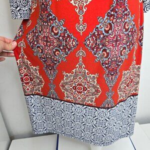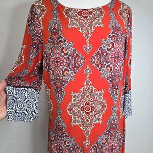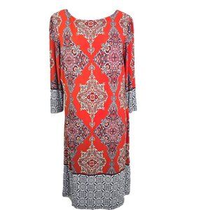 LONDON TIMES Burnt Red Three-quarter Sleeve Mini Shift Dress