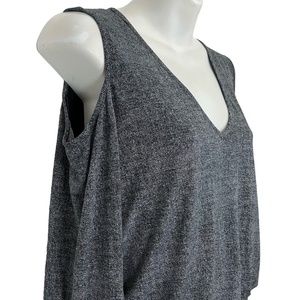 LONDON TIMES Gray Cold Shoulder Blouson Stretch Knit Knee Length Dress sz 10