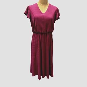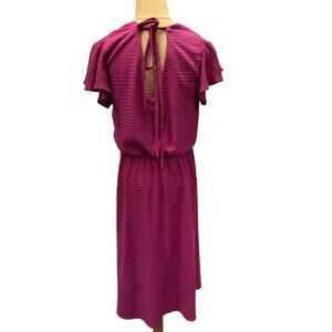This beautiful pink dress from London Times is perfect for any occasion. The fit and flare style, along with the jacket and midi length, make it a versatile addition to any wardrobe. The dress features an open back and loose sleeves, adding a touch of elegance to the overall look. The dress is made for women in size M, with a regular size type and department. The flowing fairy design adds a touch of whimsy to the dress, making it perfect for a day out or a special event.