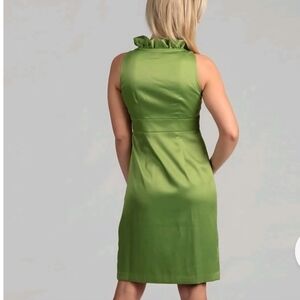LONDON TIMES Sleeveless Ruffle Collar V Neck Lime Green Hourglass Dress Size 10