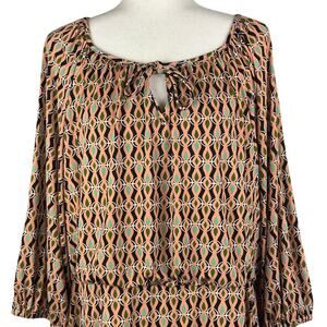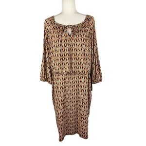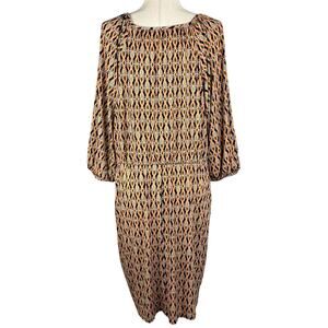 LONDON TIMES TIE NECK COLD SHOULDER BLOUSON DRESS IN ORANGE GREEN NWT SIZE 18W