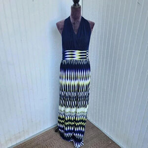 LONDON TIMES Women’s Medallion Print Blue Stretch Sleeveless Maxi Dress Size 12