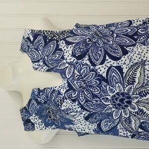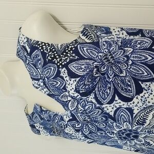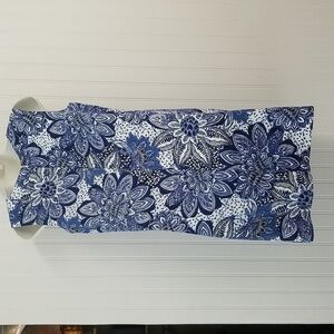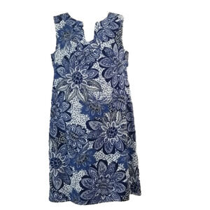 London Times Shift Dress. This sleeveless dress with a round V- Neckline and a blue and white floral print. Back hidden zipper closure. Womens size 6. GUC. Approx measurements