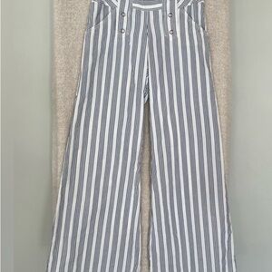 LONDON-JEAN Blue and White Striped Wide Leg Pants