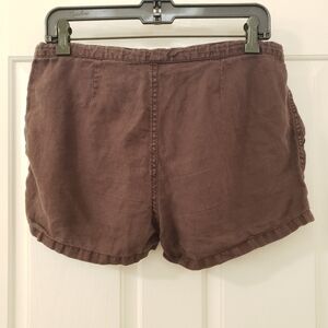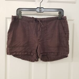 Stylish dark brown cargo shorts. Features front pockets and drawstring waist. Ideal for casual outings.